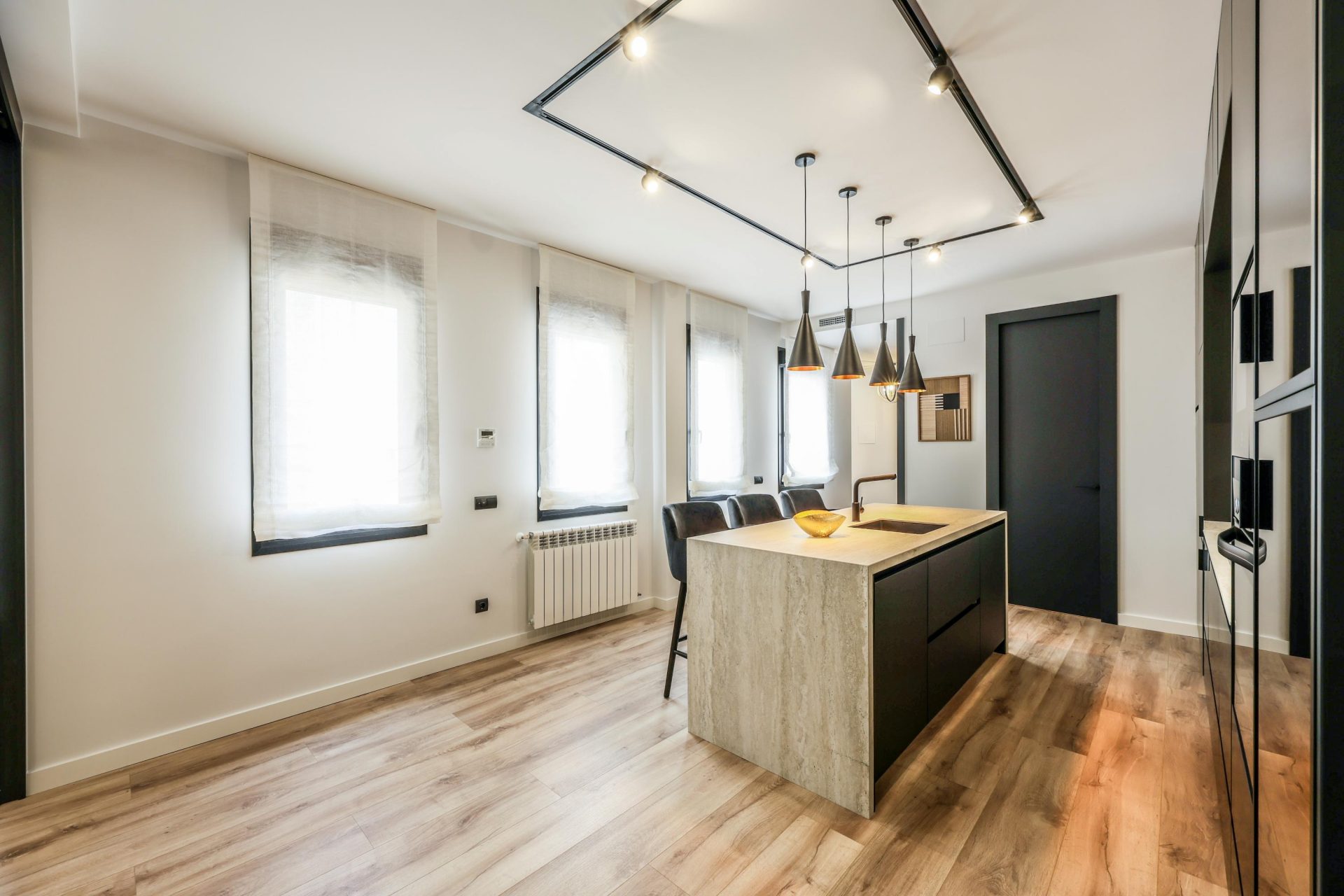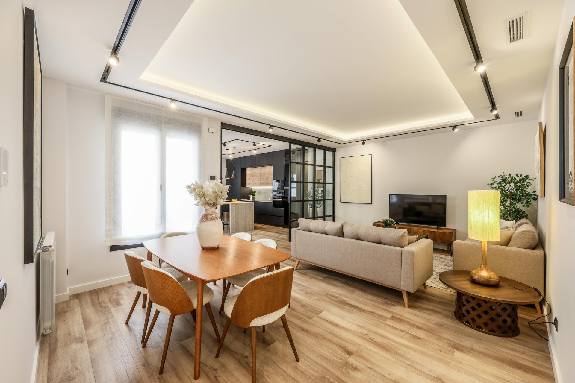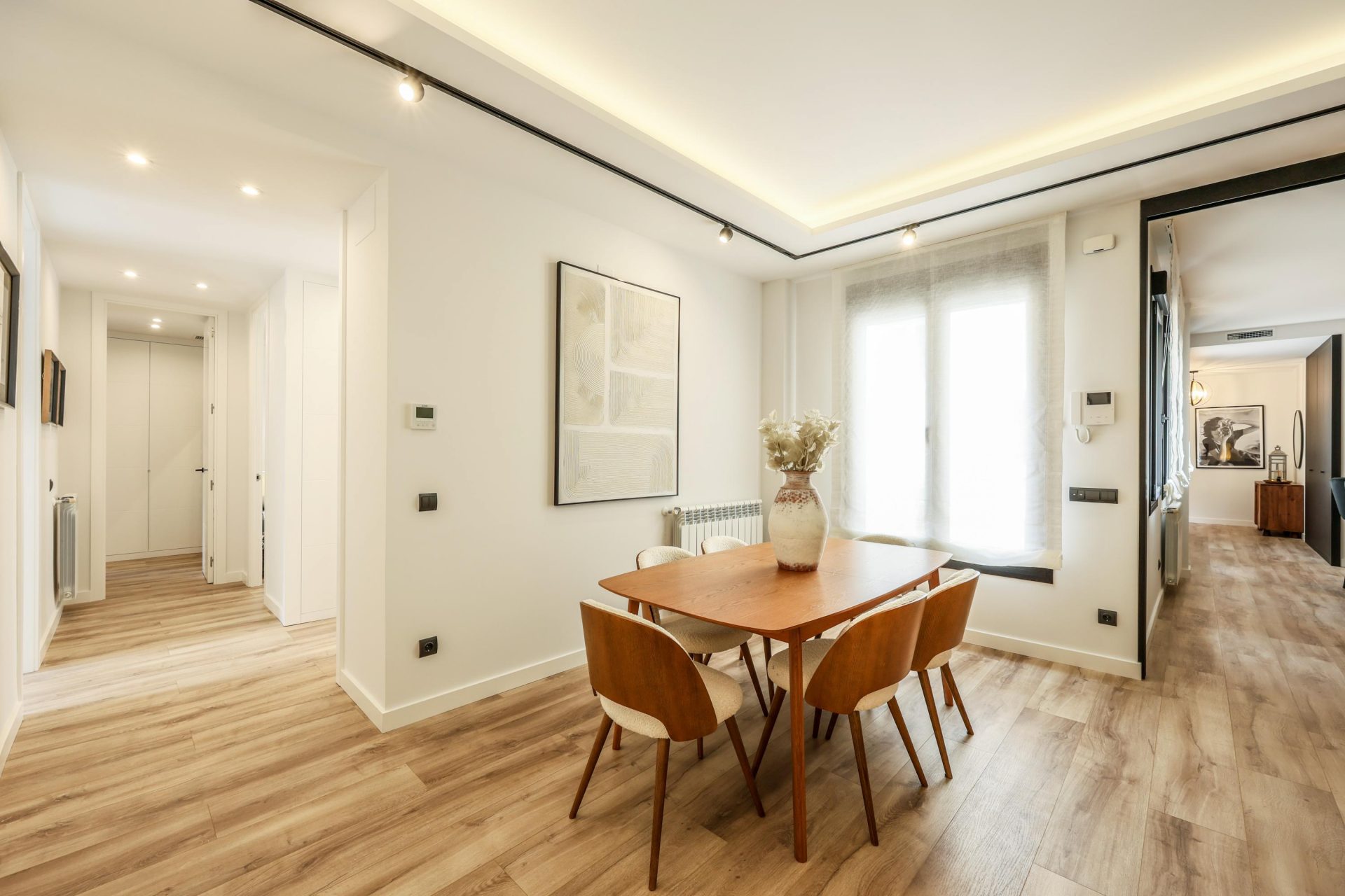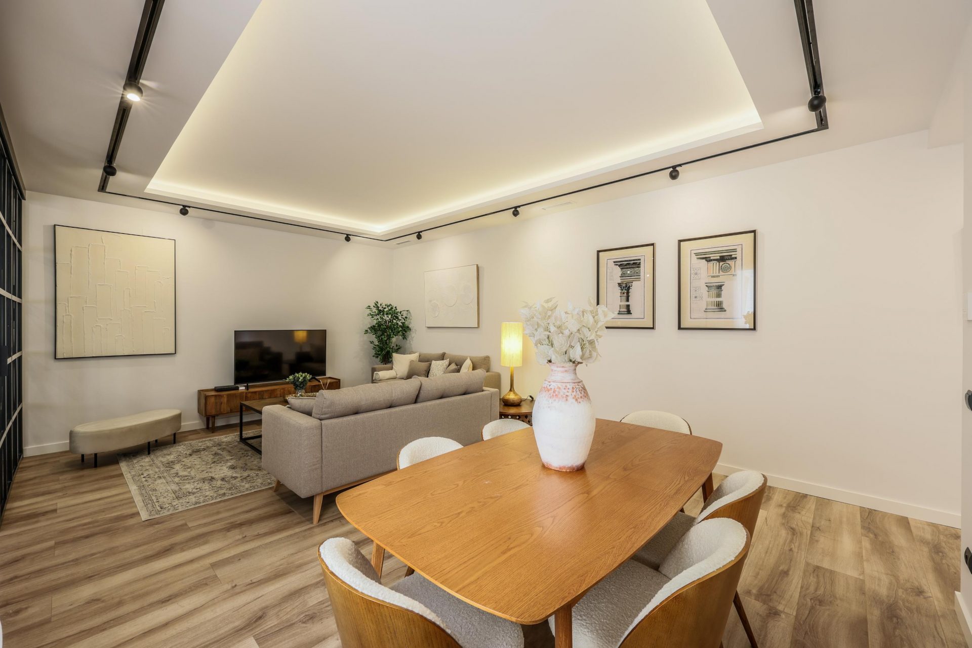 Cada detalle de la reforma ha sido cuidado al máximo, con acabados de primera calidad como tarima flotante AC5, persianas motorizadas y carpinterías de alto nivel, tanto exteriores como interiores. Las puertas altas a medida completan la elegancia del espacio.