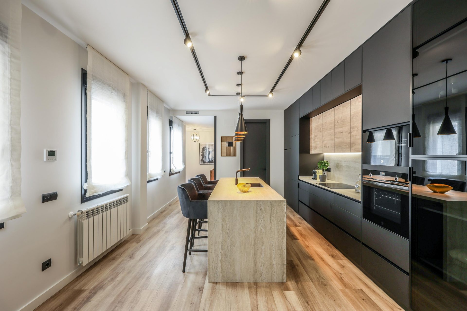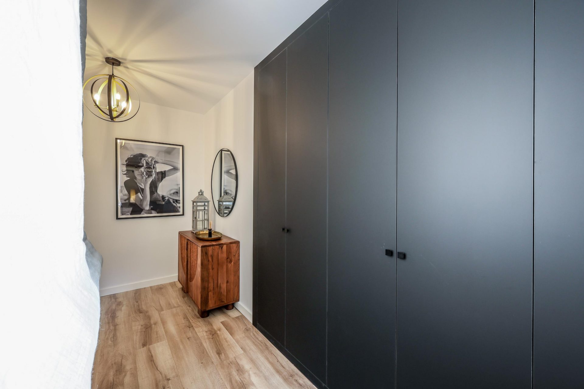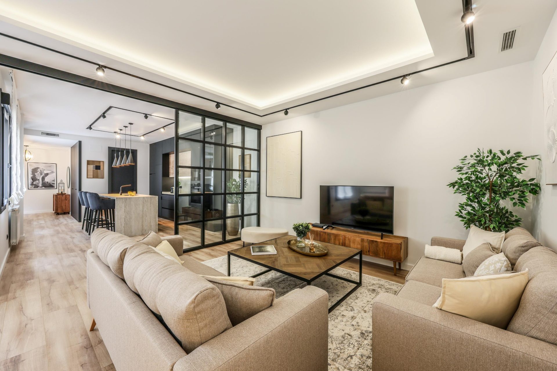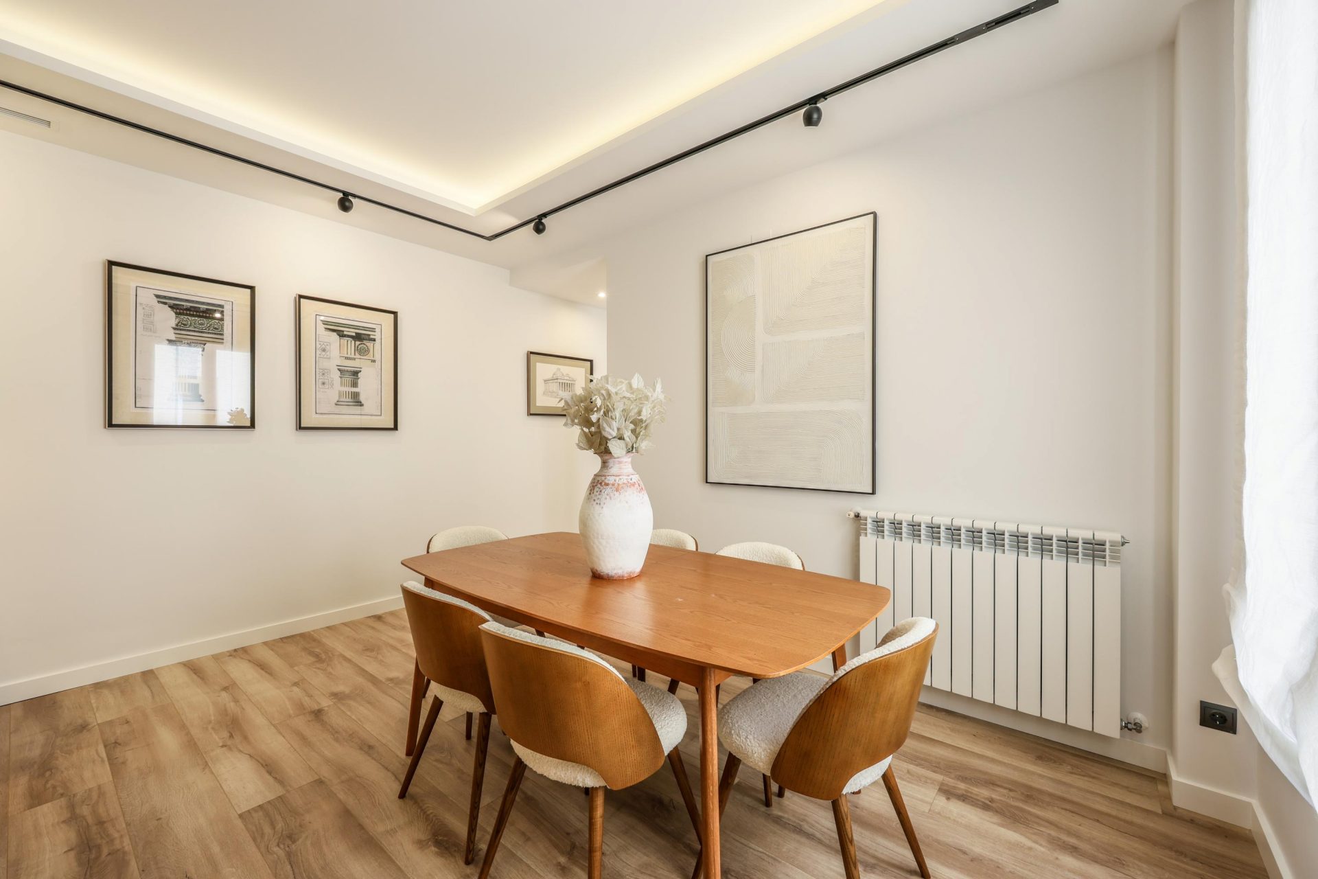 Cada detalle de la reforma ha sido cuidado al máximo, con acabados de primera calidad como tarima flotante AC5, persianas motorizadas y carpinterías de alto nivel, tanto exteriores como interiores. Las puertas altas a medida completan la elegancia del espacio.