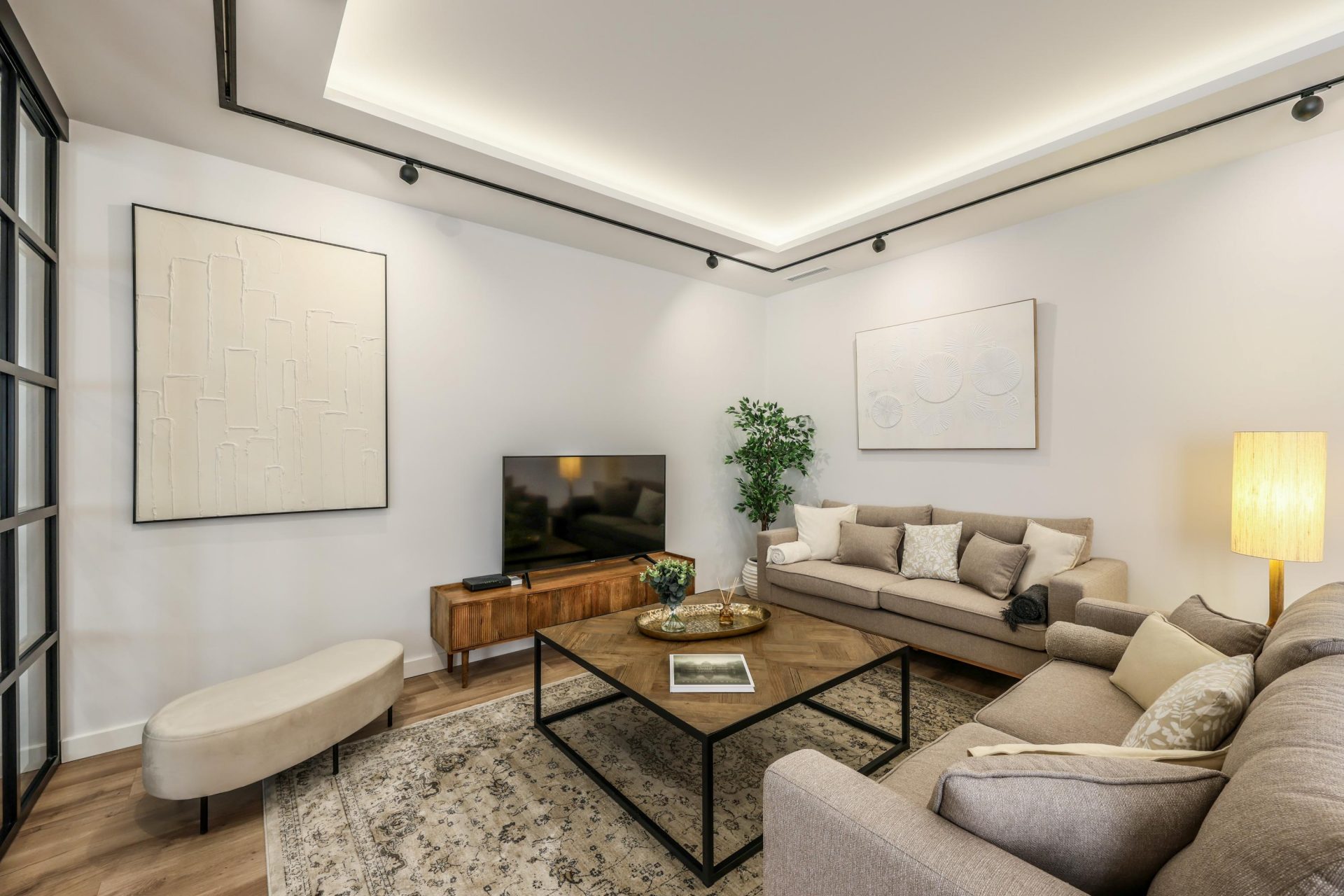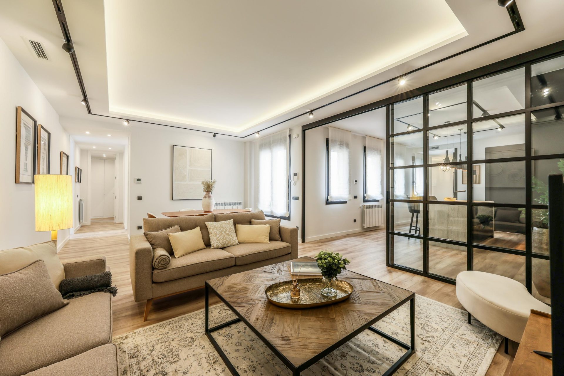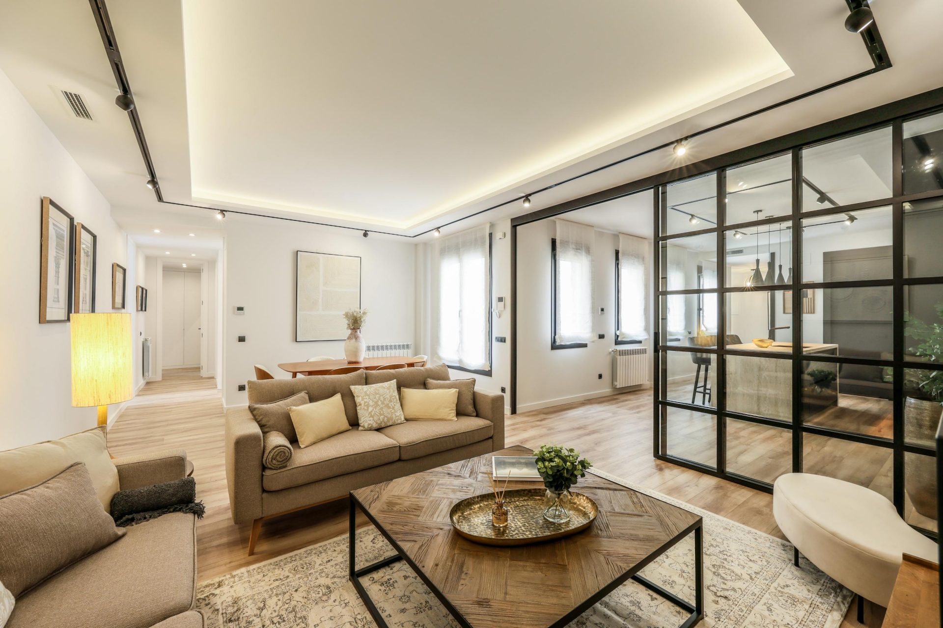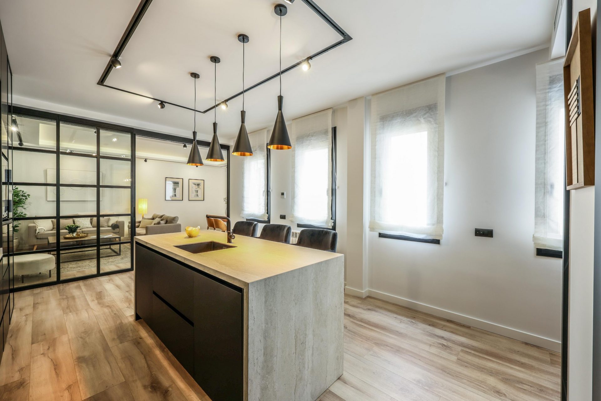 Cada detalle de la reforma ha sido cuidado al máximo, con acabados de primera calidad como tarima flotante AC5, persianas motorizadas y carpinterías de alto nivel, tanto exteriores como interiores. Las puertas altas a medida completan la elegancia del espacio.