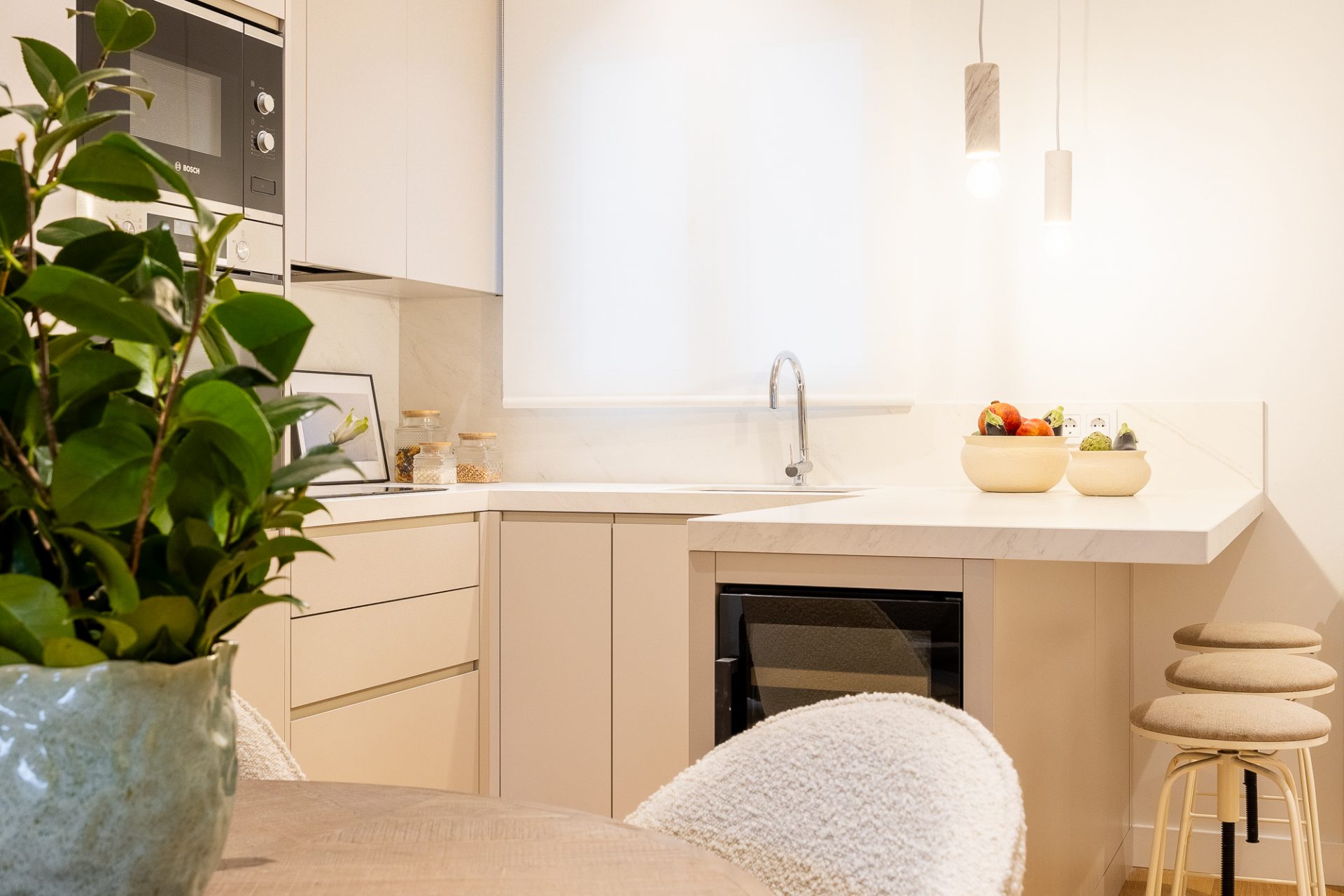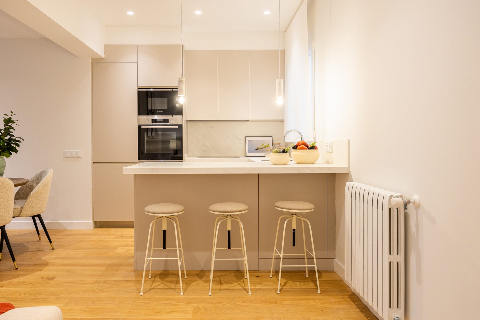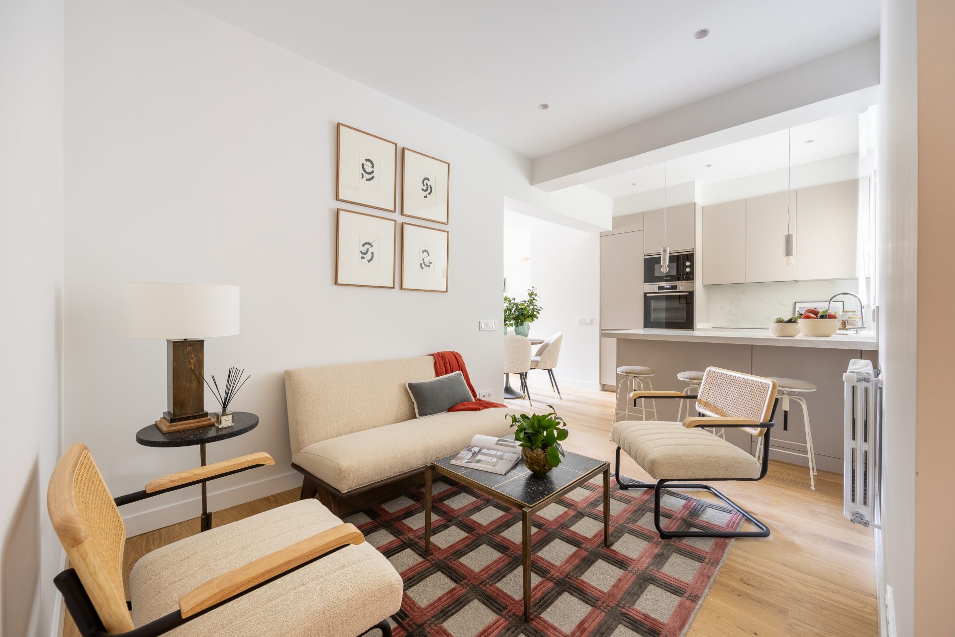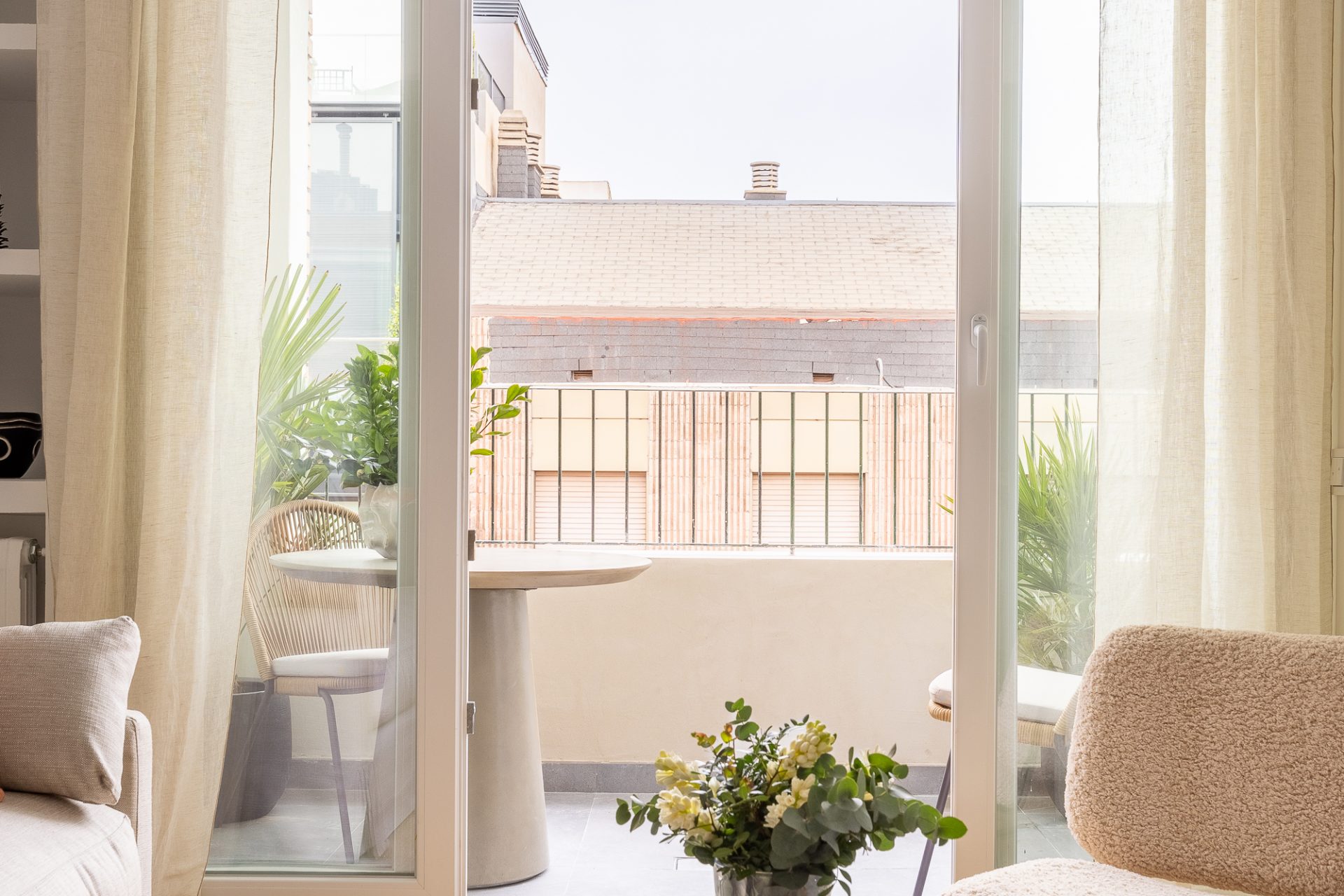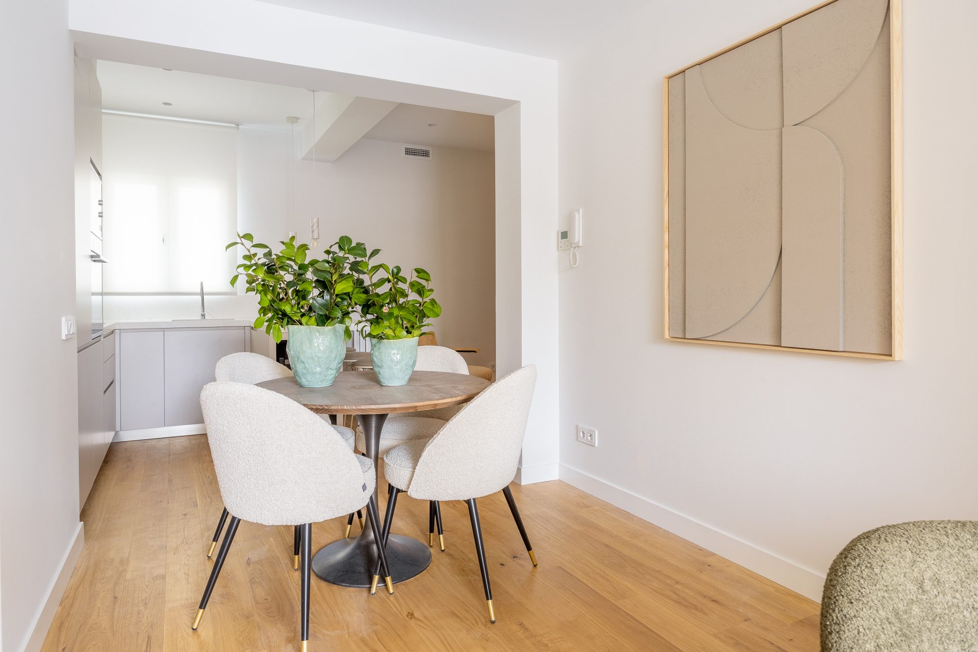 Con 105 m2 de elegancia y estilo, este hogar recién reformado y completamente amueblado te recibe con un ambiente sofisticado y acogedor. Su amplia terraza te invita a disfrutar del aire fresco mientras contemplas el bullicio de la ciudad.