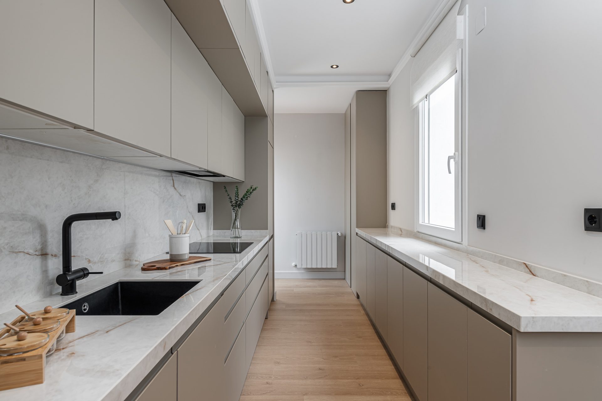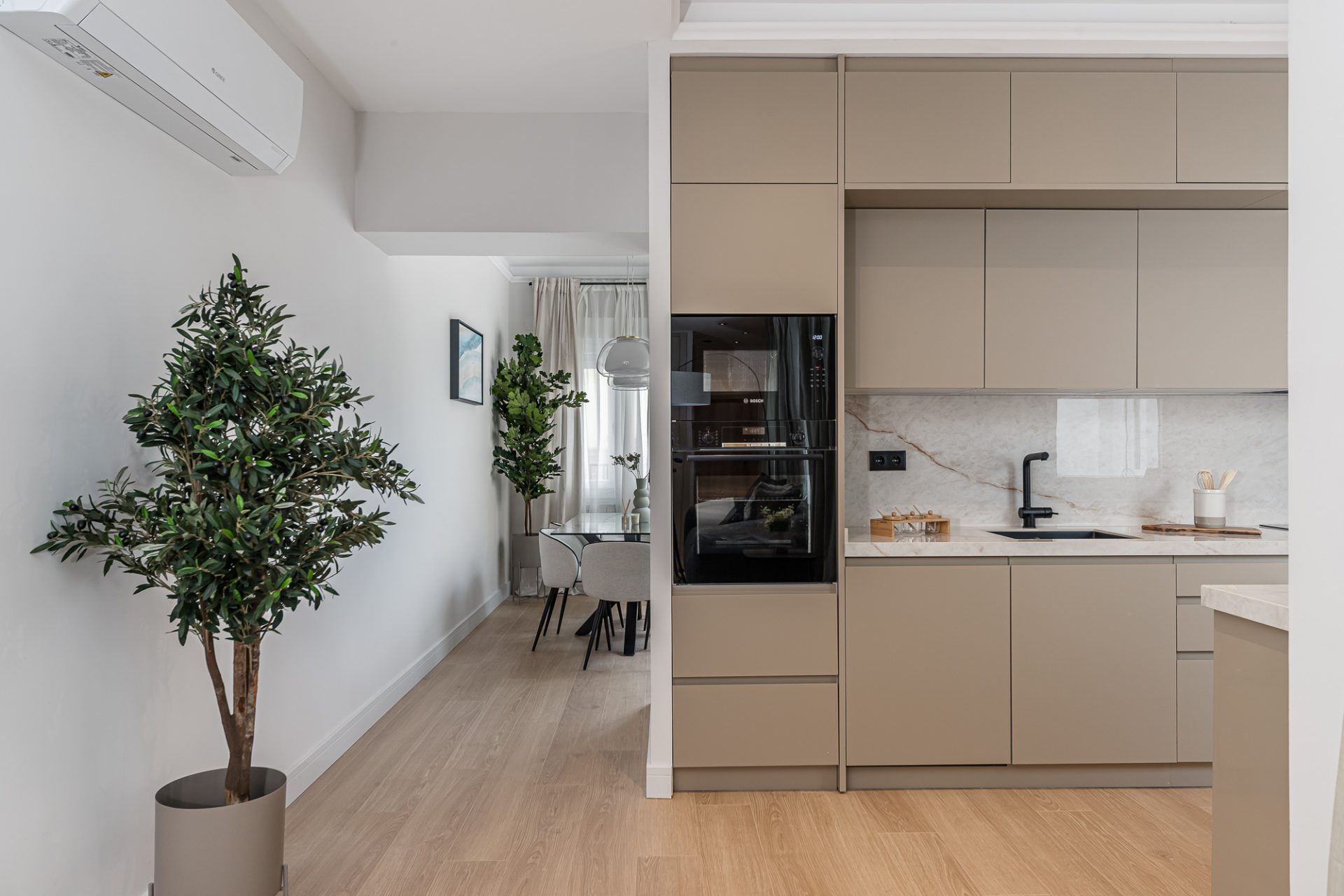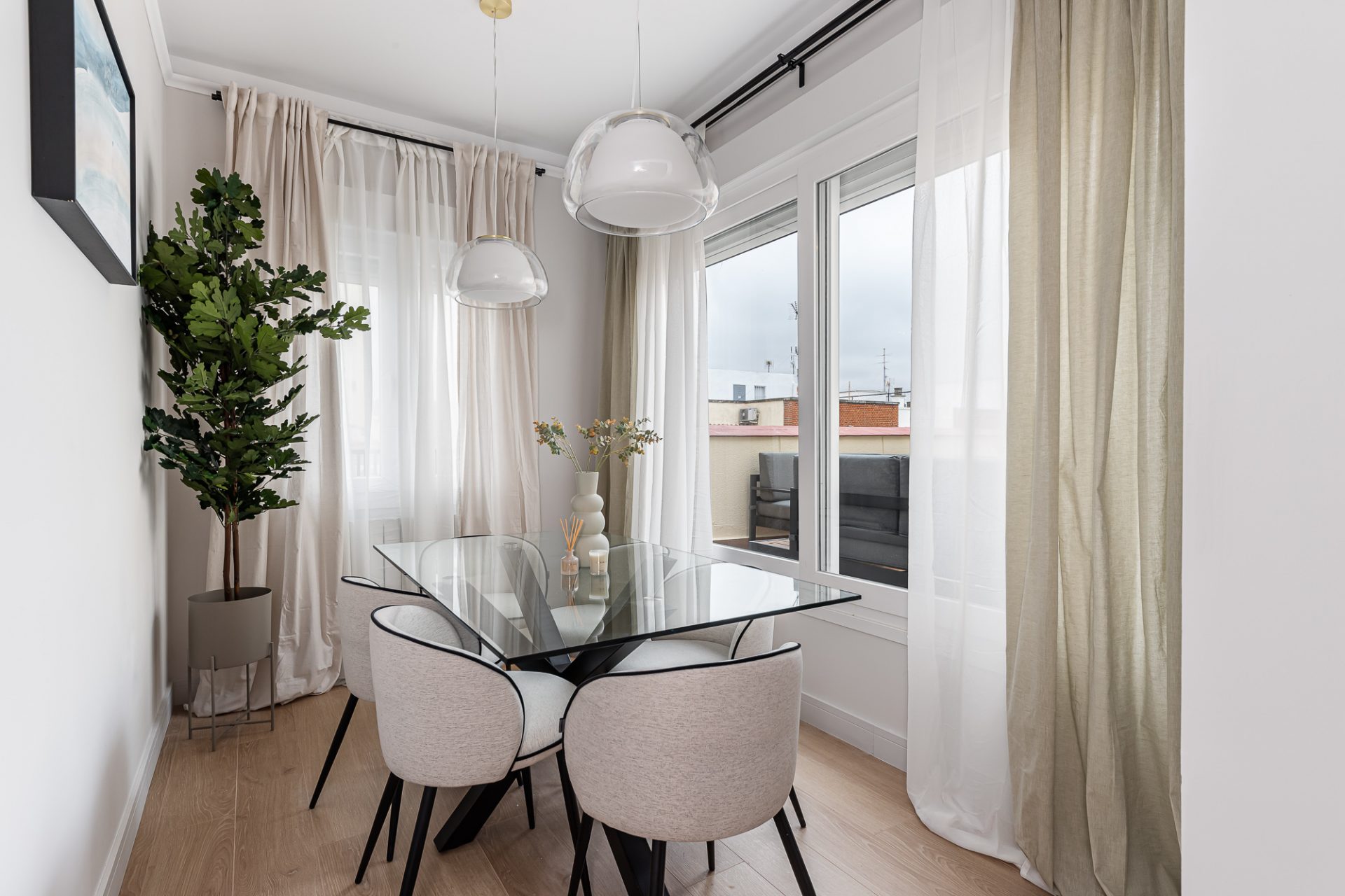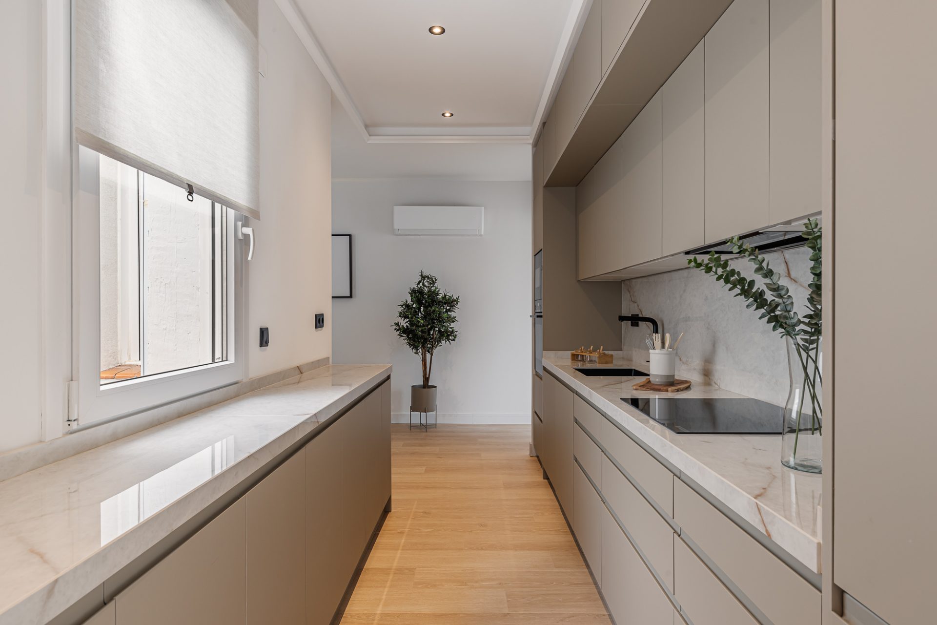 Distribuida en dos amplias habitaciones y dos baños, la vivienda destaca por su diseño inteligente y detalles de alta calidad. La reforma ha optimizado el espacio, creando una atmósfera fluida y elegante en todas sus estancias. El salón, amplio y luminoso, es el lugar perfecto para relajarse o recibir invitados, mientras que la cocina, totalmente equipada con electrodomésticos de última generación, se integra perfectamente con el resto del espacio, ideal para momentos de convivencia.