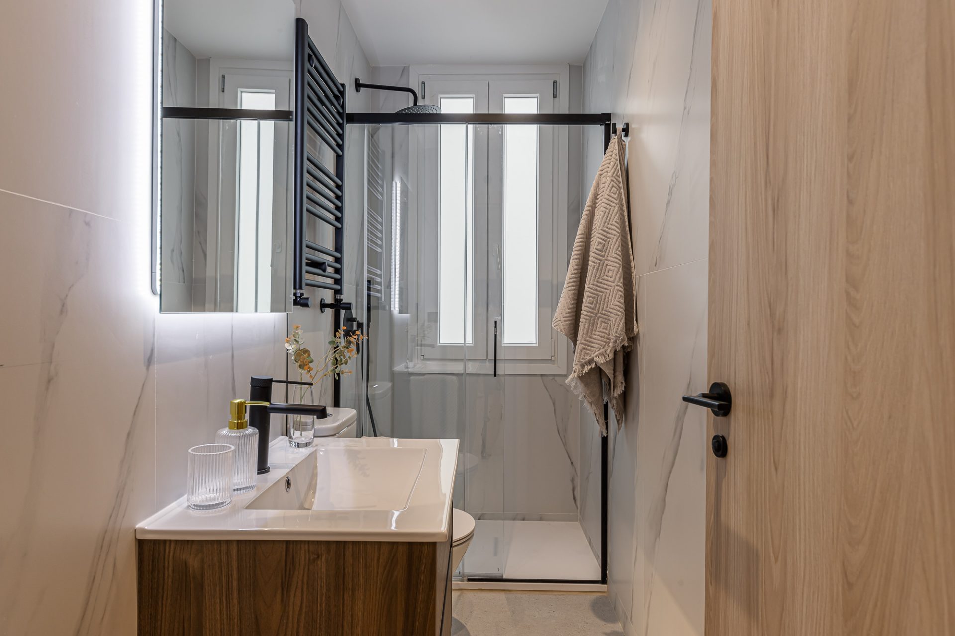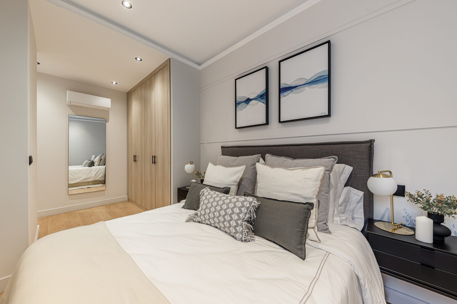 Las habitaciones ofrecen un refugio privado, con acabados premium y una decoración cuidada que refleja el estilo contemporáneo de la vivienda. Los dos baños, diseñados con materiales de alta gama, ofrecen un confort excepcional y un diseño estético que complementa la elegancia del hogar.