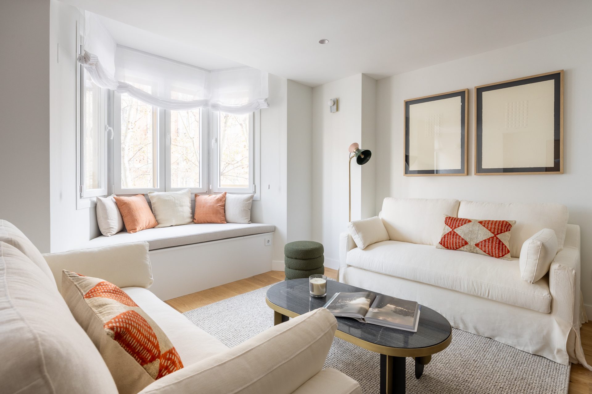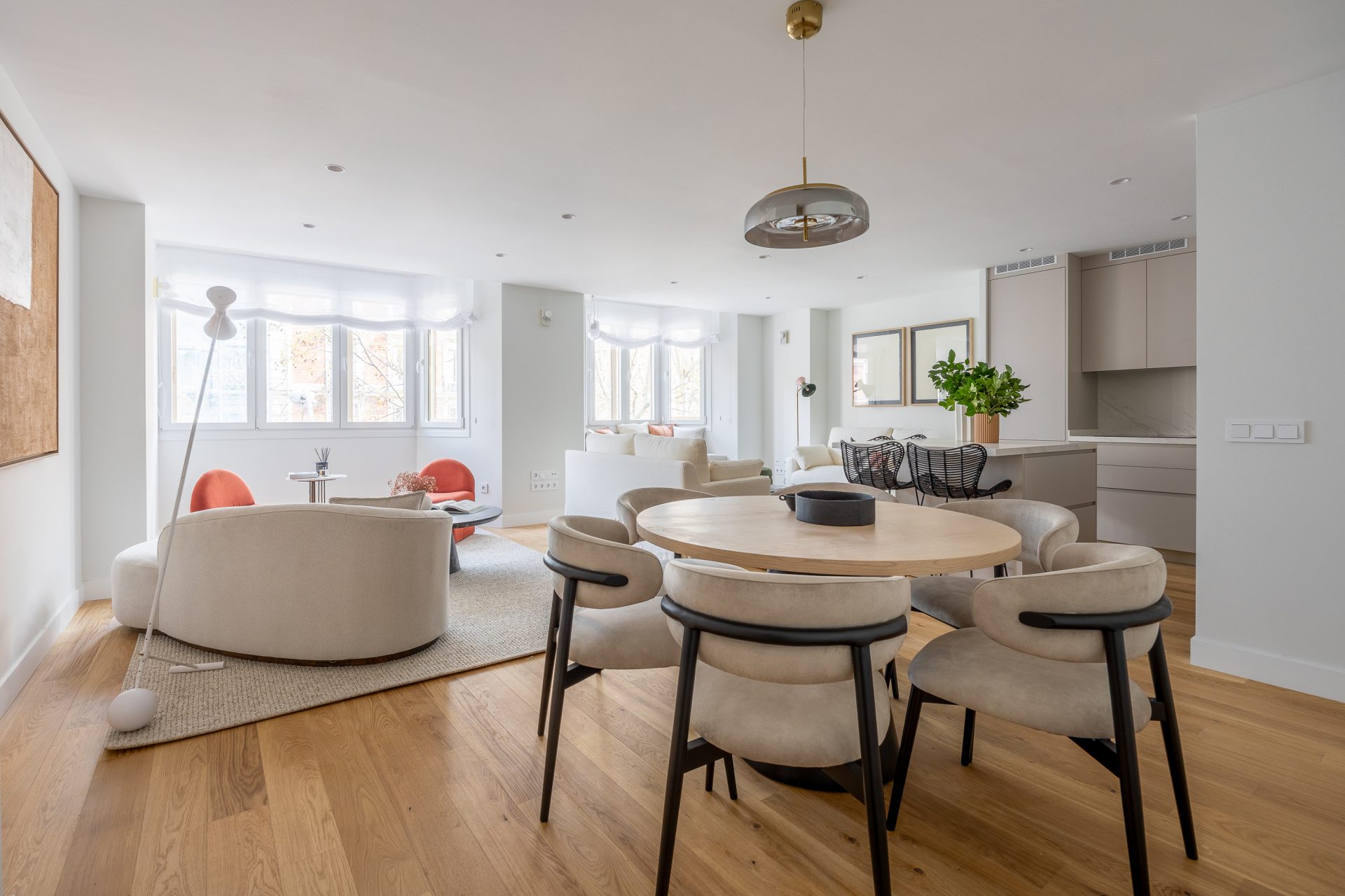 Este exquisito apartamento, meticulosamente renovado con un diseño de vanguardia, deslumbra con sus 150 metros cuadrados repartidos en dos amplias áreas de estar, bañadas en luz natural gracias a sus generosos ventanales orientados al este, ofreciendo vistas a los emblemáticos edificios de la calle Velázquez. Además de un comedor y una cocina de concepto abierto, cuenta con tres lujosos dormitorios y tres baños.