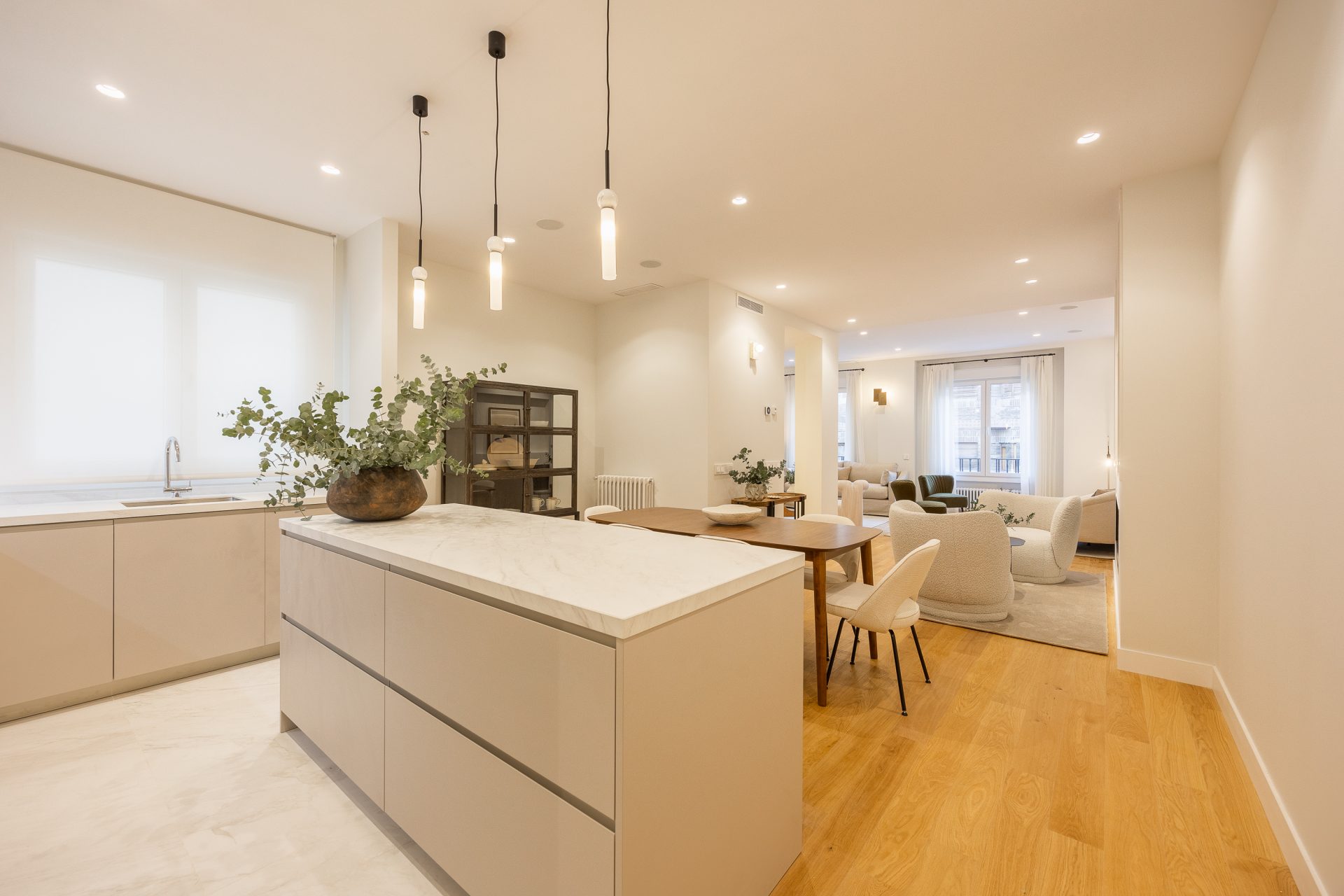 Déjate envolver por la amplitud y la versatilidad de sus 3 zonas de salón, que incluyen una moderna cocina abierta equipada con los últimos electrodomésticos, un espacioso comedor para compartir momentos inolvidables con tus seres queridos y una sala de estar perfectamente integrada para el entretenimiento y el relax.