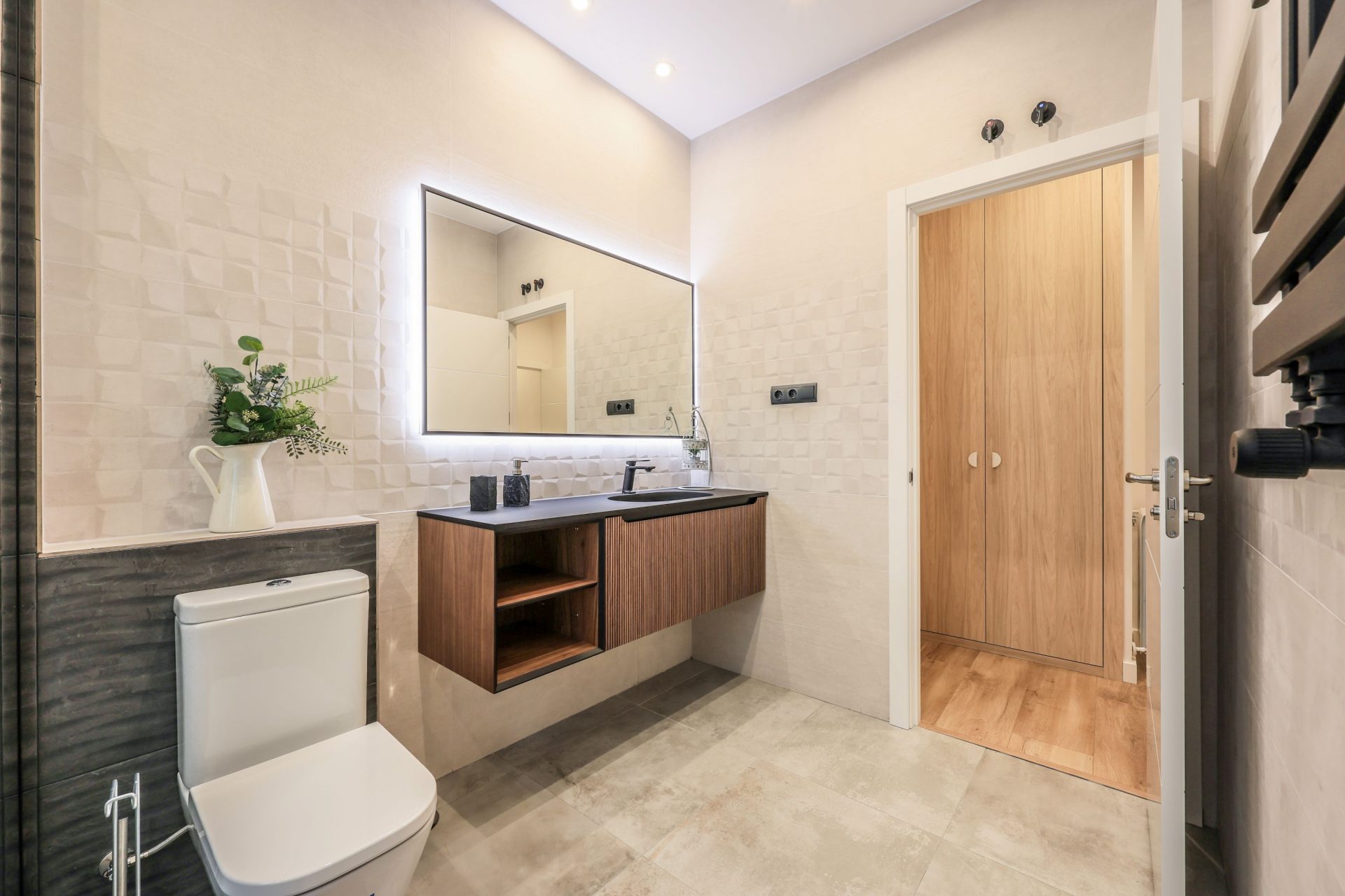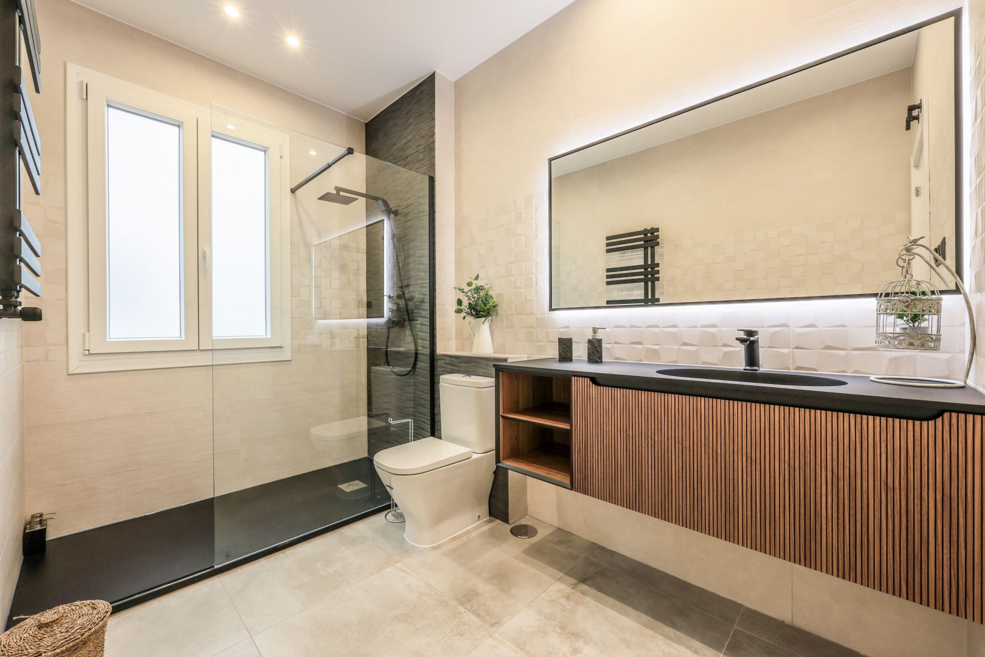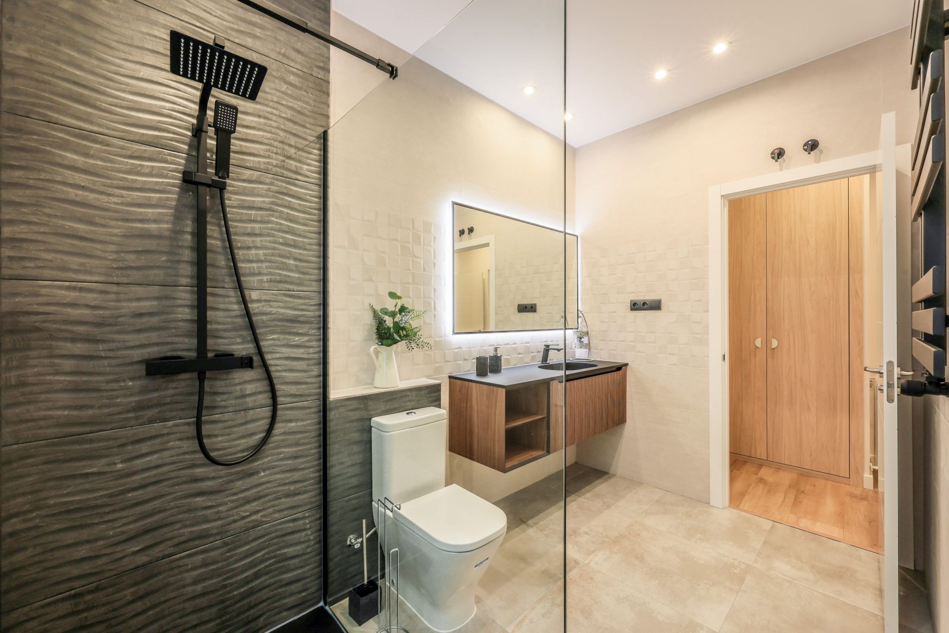Los espejos de los baños disponen de iluminación LED. En cuanto a los dormitorios, tienen armarios empotrados completamente vestidos y con iluminación LED también.