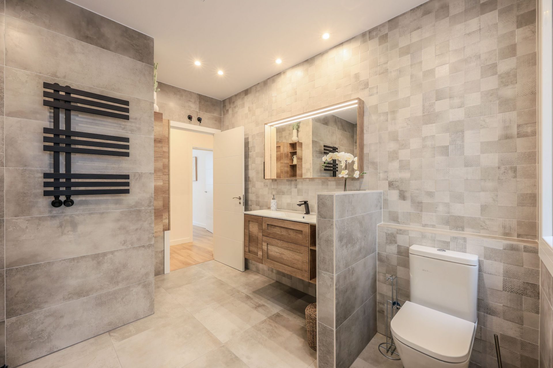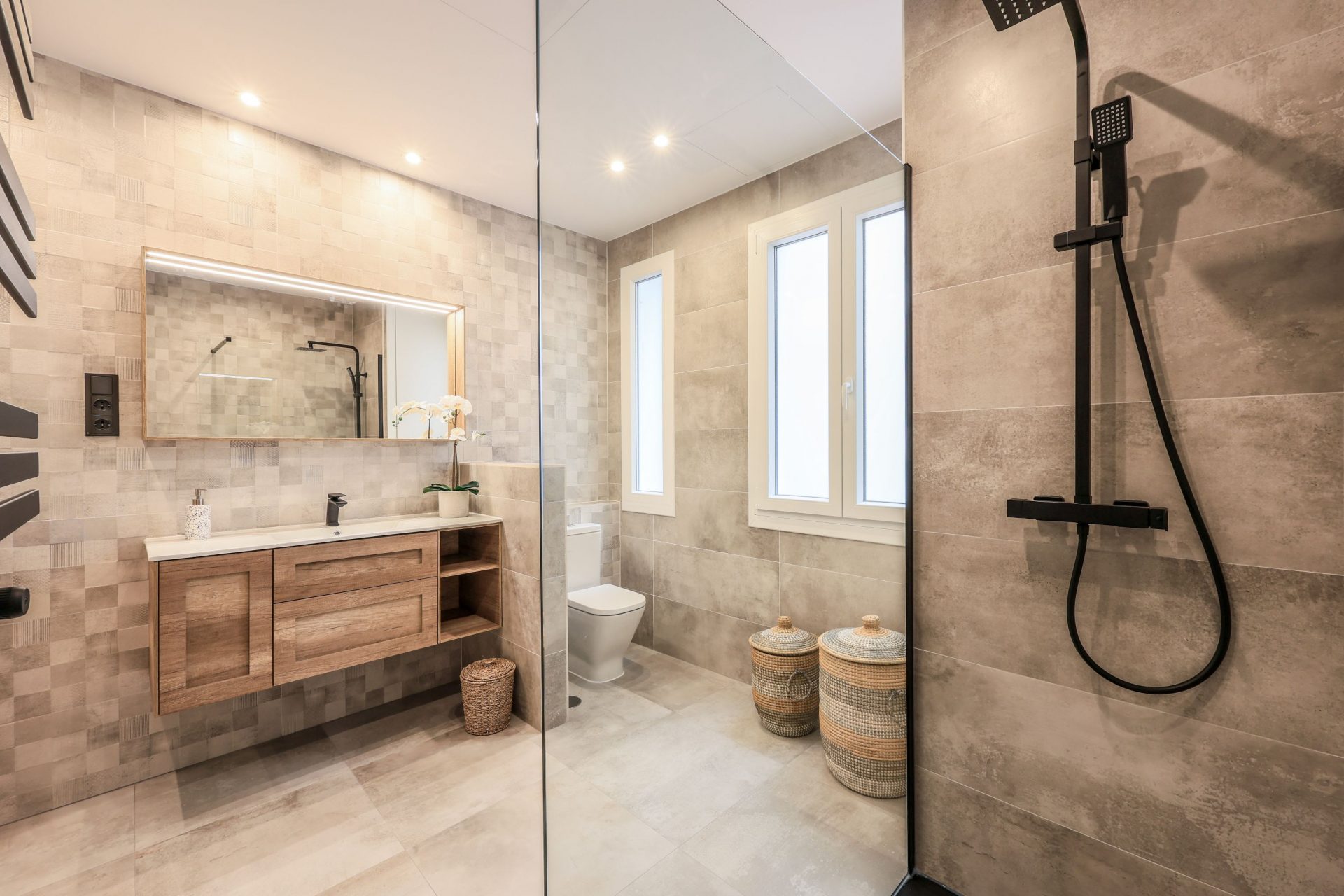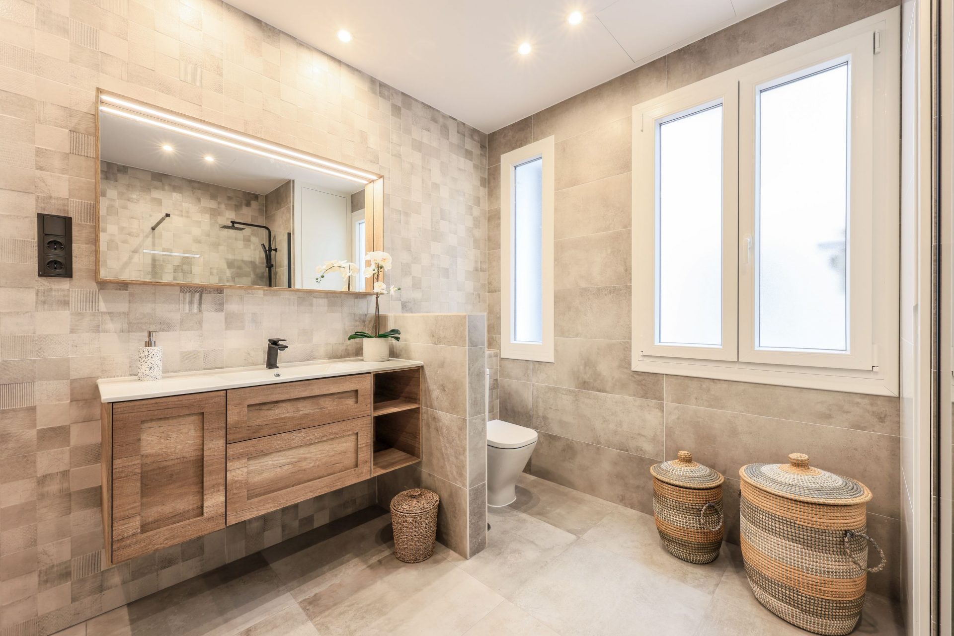Los espejos de los baños disponen de iluminación LED. En cuanto a los dormitorios, tienen armarios empotrados completamente vestidos y con iluminación LED también.