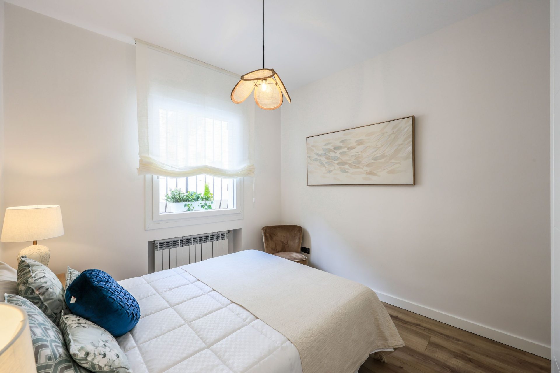 La instalación del aire acondicionado y la bomba de calor es por conductos y dispone de un sistema inteligente Airzone DAIKIN, con control individualizado por estancia y control WIFI, en toda la vivienda.