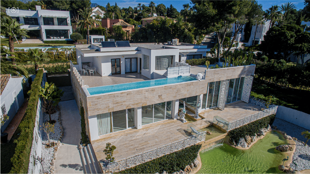 Es una propiedad única y diferente a cualquier otra. Desde su diseño fue pensada como un lugar de disfrute y ocio. Salón ideal para fiestas y reuniones. Dos piscinas, una tipo playa en el jardín y otra climatizada infinity en la planta alta. Varias terrazas donde disfrutar del sol y la calidad de vida de la Costa del Sol. Se vende amueblada y con las obras de arte que se aprecian en las fotos.
