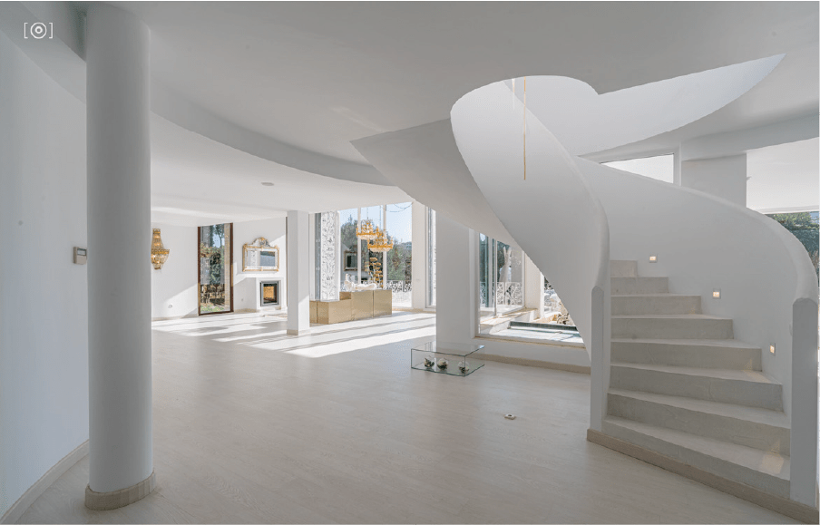 Cabe destacar en esta planta la escalera de diseño en mármol blanco con una espectacular iluminación.