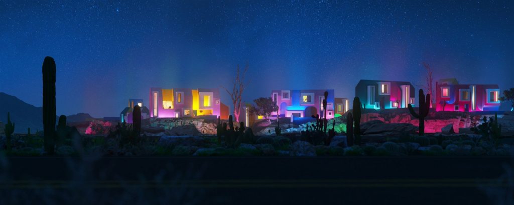 Sonora Art Village de Davit Jilavyan y Mary Jilavyan, es un proyecto inspirado en Sonora House, un escape en medio del desierto lleno de color y geometría.