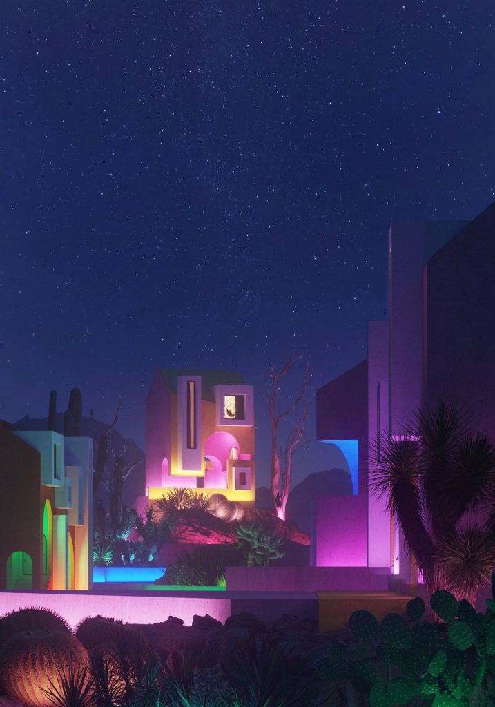 Casi un año después de Sonora House, Davit Jilavyan y Mary Jilavyan retomaron este concepto durante el aislamiento social para crear un lugar donde la gente pudiera escapar de la realidad gris que estamos viviendo, un espacio 3D, brillante, casi como una caricatura.