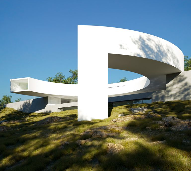 Esta original vivienda circular llamada La Casa del Sol es obra el estudio de arquitectura fundado por Fran Silvestre en la ciudad de Marbella, Málaga. Un proyecto inspirado en esculturas de artistas conocidos, como La Puerta del Universo de Andreu Alfaro, realizada en 1983, una circunferencia girada y suspendida sobre una base cuadrada que abre la arquitectura hacia un espacio infinito; y Elogio del Horizonte IV que Eduardo Chillida creó en 1989 en Gijón, también basada en la idea de centralidad abierta como representación de algo inabarcable.